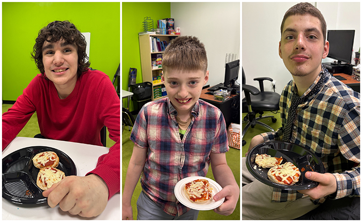 Sauce, cheese, and lots of smiles making English muffin pizzas!