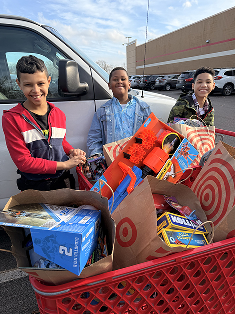 Here are some photos of their shopping trip and delivering the toys.